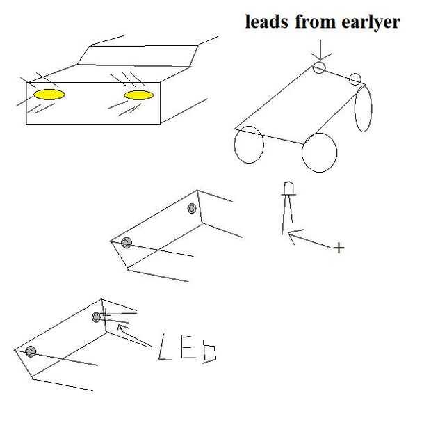 Este es el mod de luz. Vas a necesitar 2 LEDs de cualquier color. Tome la parte superior de la hummer de hotglue a lo plástico de la linterna. Suelde el positivo y negativo de los LEDs juntos. Esencialmente usted tendrá entonces un LED grande. El negativo al negativo y el positivo al positivo del motor eléctrico de la soldadura. Tornillo en la parte superior y listo.