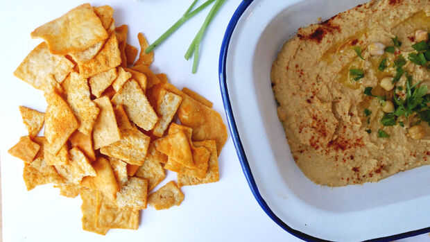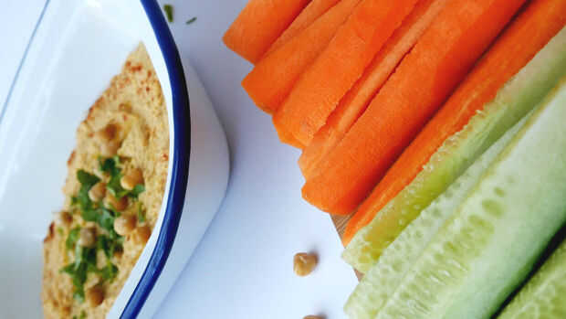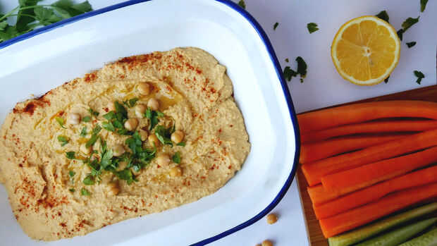 Una de las opciones más saludables para dips es humus. Le provee de proteínas, hierro, fibra y varias vitaminas esenciales y minerales, y aunque pueden ser alto en grasa, es grasa no saturada sobre todo saludable para el corazón.En esta receta de hum