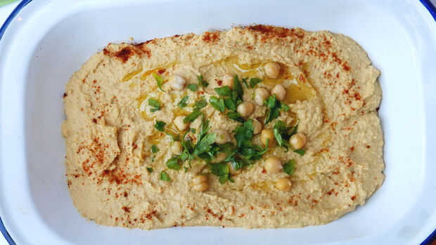 Hummus es absolutamente delicioso, ha sido compartido entre amigos durante milenios y es una fantástica fuente de proteína para los veganos! Ya sea utilizado como un dip o salsa, hummus es versátil, sabroso y muy sencillo de hacer en casa.Se necesita