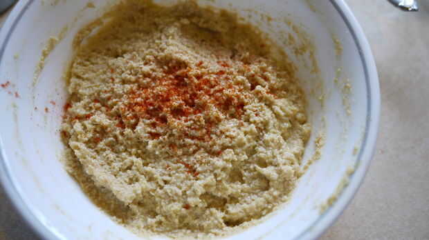 La consistencia de este humus es gruesa comparado con lo que tienes en la tienda. También tiene un sabor a garbanzo pegada.