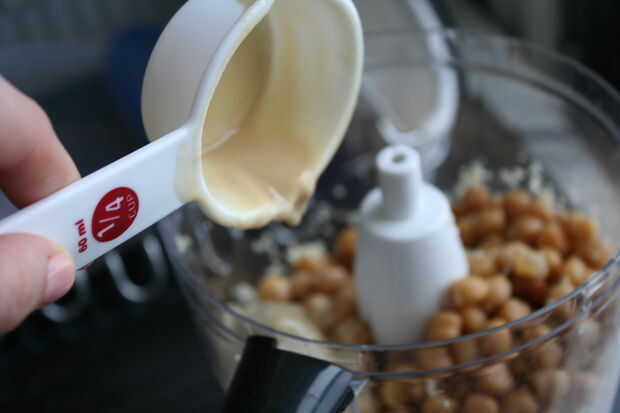 • Miden aproximadamente una 1/4 taza de tahina y verter en la mezcla