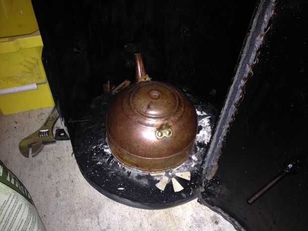 Solamente otro problema que necesita ser fijado entra humedad en el fumador. He usado un tarro de cristal, pero después de que el agua hervida de shattered (probablemente de líquidos goteando en la superficie caliente). Para remediar esto estoy usando una viejo caldera superior estufa rota.