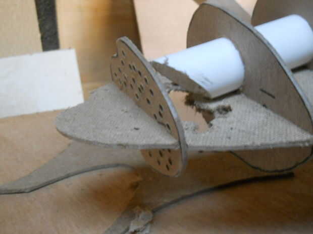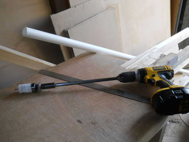 Para los montajes asta que simplemente até un poco grueso de madera blanda, con un descuento con un agujero de 32mm de sierra a recibir algunos tubos de PVC.