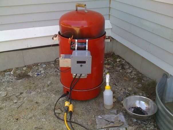 Recogí un Ahumador eléctrico Gourmet de Brinkman por un impulso un día. Es un acero puede con un calefactor de 1500W, una bandeja de agua y algunos estantes para el alimento. Para menos de $100, es un dispositivo razonable para conseguir comida realmente fantástico. Sin embargo, sólo tiene una posición: sobre 250F grados y que depende mucho de la temperatura exterior. Verás, el calentador se calientey cuando ese calor aumenta, llega a la bandeja de agua y eventualmente hierve el agua. Que apenas a temperatura vapor sube y se mezcla con un poco de aire de grado 400F y adquieres un grado de 250F cocción temp. 250F es ideal para carne de cerdo, carne de res y más otros smokeables... pero no peces y no se si usted quiere conseguir una corteza muy gruesa en la carne.