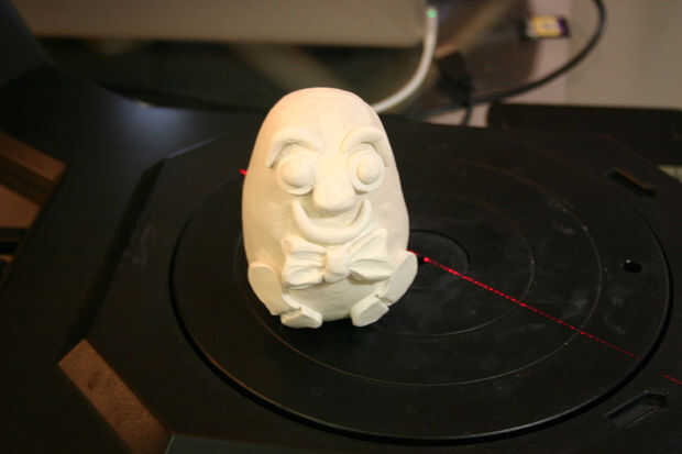 Para crear Humpty Dumpty, mi esposa hizo el personaje usando Sculpey Clay y escaneada en un escáner de MakerBot.