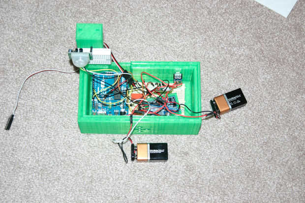 Muy bien, así que tenía una caja de cartón puesta alrededor, ligeramente más grande que mi telefono (Xperia Z). Estaba pensando qué se debe hacer. Bombilla de luz [Mr.Gru en Despicable Me]. Una carga de la vaina para que mi teléfono puede sentarse en