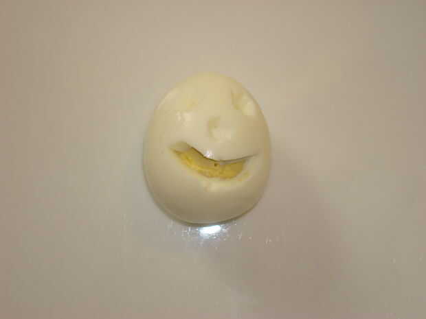 • Volver sobre el área de la boca con el cuchillo y un poco quitar una astilla de clara de huevo para hacer una pequeña abertura estrecha.