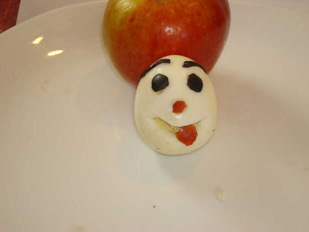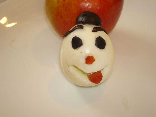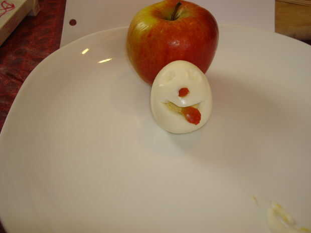 • Cuidadosamente con un cuchillo de tallar el huevo algunas cejas.