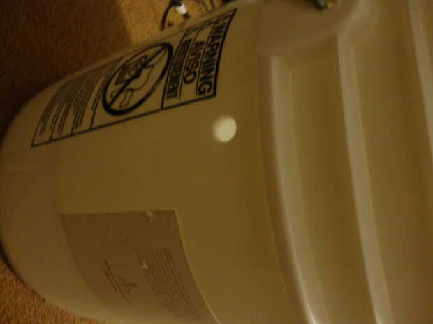 A continuación, corte un agujero circular en el fondo de la cubeta superior con la cuchilla de utilidad. Asegúrese de que el diámetro del agujero del corte es más pequeño que el diámetro de la canastilla, por lo que todavía hay algún soporte estructural.