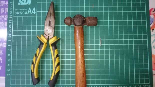 5. tuerca de un perno (tamaño y peso depende del objeto/herramientas que desea colgar. Tengan peso similar).