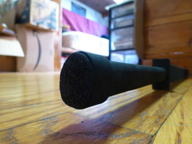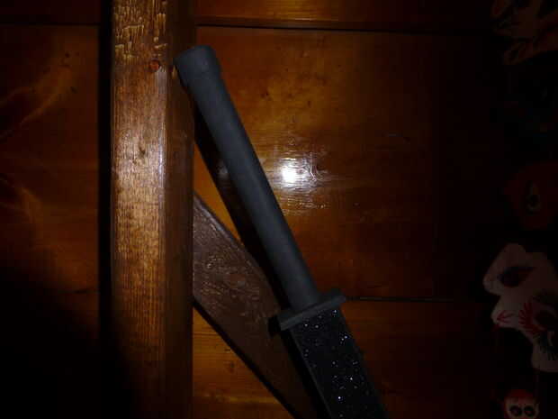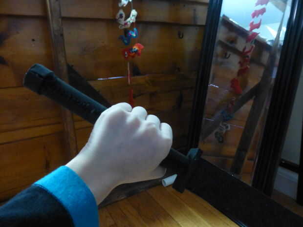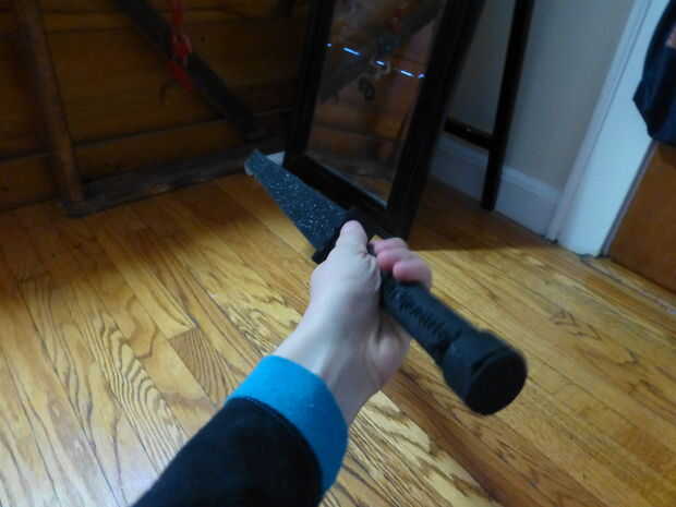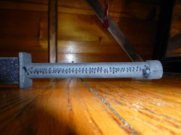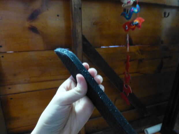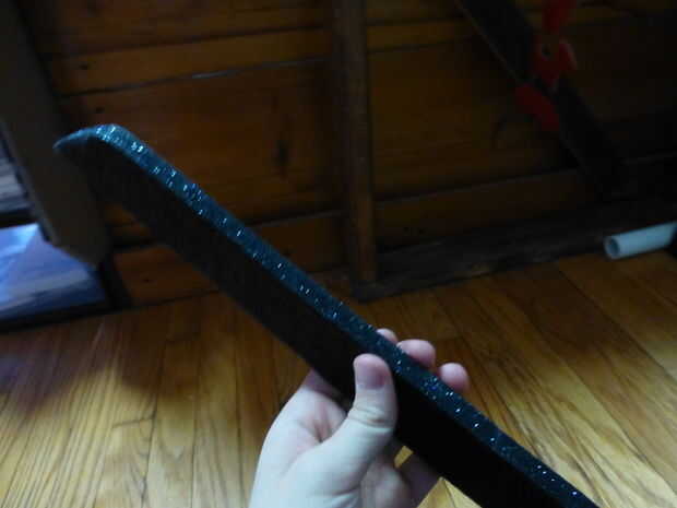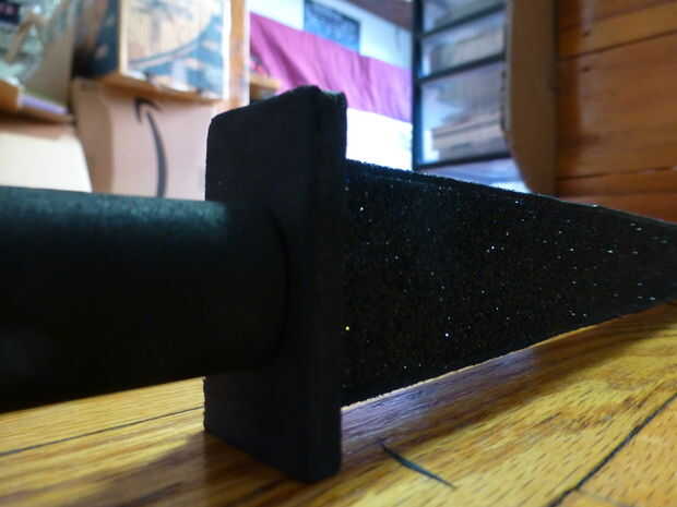 La espada no tiene una "cuchilla" como mi otra espada 3.0 Z Alt. Una cuchilla afilada siempre es agradable, pero porque quería que la espiga de la mitad de la hoja esto habría sido una tarea larga y laboriosa que consiste en carpintería precisa y no tengo las herramientas (y sí que me chupen en carpintería... Lo admito). La ventaja de no tener una cuchilla afilada es que es más difícil para dañar. En 28"(de guardia hasta la punta) creo que también es bastante larga por tener una hoja de estilo ninjato. Me gusta las hojas largas, porque a veces (especialmente cuando las personas afectadas) es agradable para simplemente empujar enemigos apagado a distancia. El mango es más corto que el habitual (aka no loco de largo), porque no creo que un mango super largo coincidirá con esta espada muy bien, pero aún seguí lo bastante largo porque siempre me gusta tener la opción de dos manos o un montón de espacio con una. Si quieres saber más sobre "modelo número la cosa", mira este instructable. Tiene una explicación bastante buena y no quiero copiar aquí porque es bastante larga.