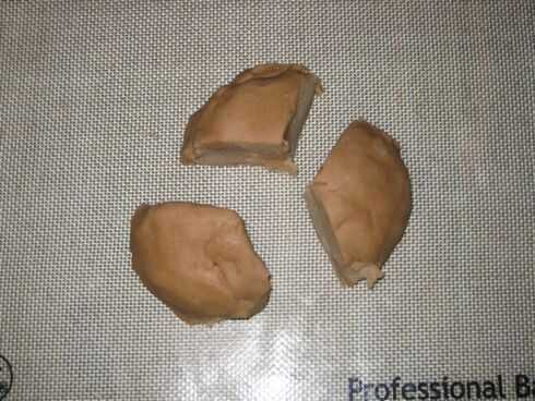 Dividir la masa chocolate fría por la mitad y la masa de vainilla en tercios.