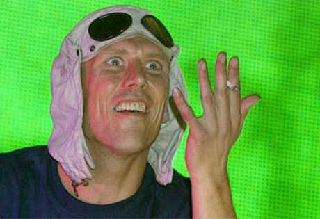 OK ahora me detengo para explicar la broma en para todos la gente de UK que recuerde el domingo por la mañana demostración de 90 en materia de la BBC y su ranura regular llamado ciencia con Bez. Si no sabes quien es Bez esto puede ayudar a cada semana Bez le plantea alguna pregunta científica que implica generalmente algún tipo de sustancia estupefaciente que entonces utilizaba la ciencia para obtener una respuesta.