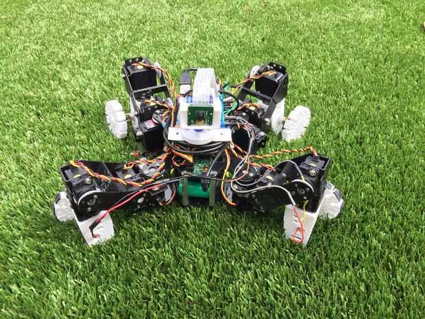 El cuadrúpedo código nombre Husky es un cuatro patas cangrejo como el robot que utiliza la frambuesa pi 2, cerebro y centro de control principal. Además, incluí también un controlador de servo y el conductor del motor de control de servo y motor de Husky. Todavía hay muchos lo que queda por hacer en el robot como integración de módulo de los sonidos, algoritmo autónoma. Así que mirar hacia fuera para la futura actualización.