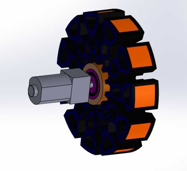 Printe hacia fuera las 4 ruedas y conectado al motor. Después de la rueda es segura en el motor, utilice un cautín para soldar los cables a la salida de potencia del motor, no importa la polaridad en el motor. Una vez que tengas completo montado el motor con la rueda, conectado el motor en el cubo del motor que se encuentra en la parte inferior de pierna. Debe izquierda a unos 2cm de espacio entre la rueda y la pata inferior. Esto es para evitar que la rueda que hace contacto con otra parte de la pierna en la posición de impulsión. Ver en la foto de arriba para referencia.