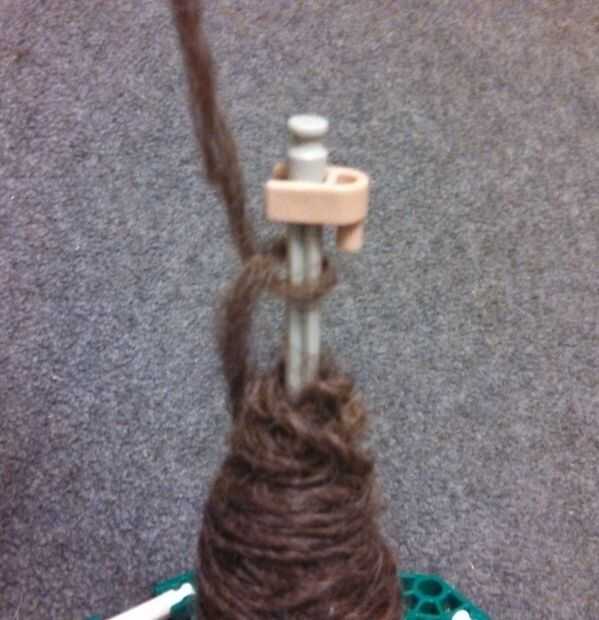 Puede simular el gancho con un solo clip. Esto requiere realizar un enganche de media con el hilo después de devanado en y antes de volver a girar, apenas como con un eje tradicional. Pero si utilizas dos clips para hacer el doble gancho que se muestra a continuación, usted encontrará que puede envolver y desenvolver el hilo alrededor de él mucho más rápidamente. ¡ Pruébalo! Verás lo que quiero decir.