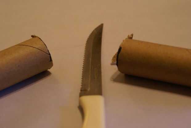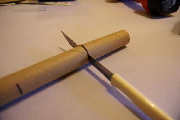 Corte a través del tubo en cada una de las líneas marcadas. No te preocupes ser perfectamente recto, mientras haces un corte limpio (es decir, sin espacios irregulares) se adhiera fácilmente y no importa si es en un poco de ángulo.