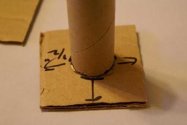 Poner una línea gruesa de pegamento alrededor del borde final de uno de sus ejes. Póngala en el centro de una de sus plazas y empuje firmemente hacia abajo rápidamente.