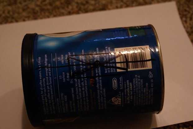 Luego, trace una línea a lo largo de la lata y colocar un rectángulo en el centro. Esto es donde tu hilo va a salir, así que no lo hacen demasiado pequeño.