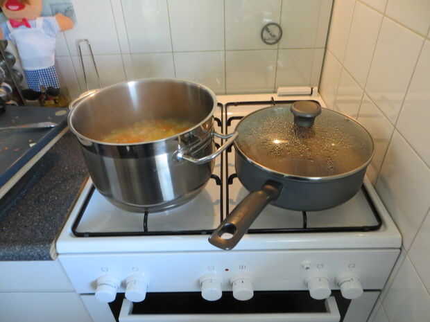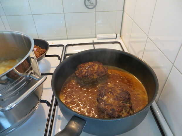 - Cuando se acaban las albóndigas, compruebe si la salsa es lo suficientemente gruesa. Cuando se sigue a 'mojar', sólo tiene que añadir curryketchup hasta que la salsa se ve bien.