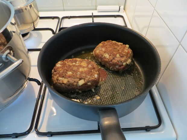 - Continuar con calor demasiado medio bajo hasta que son todavía un poco rojos por dentro, vuelta regularmente para evitar que se pegue a la sartén.