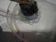 Conecte los cables. Prueba.  Pegamento caliente los cables a la Junta de perf.  Pegamento caliente alrededor del alambre y el interruptor – para mantener en su lugar y aumentar la resistencia al agua.  Pegamento y coloque las tapas y [un] gancho [plástico].