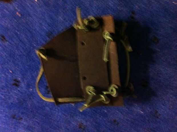para hacer el cestus de cuero inspiradas en asesinos creed la hermandad que puño sacó la forma de mi mano hasta los dedos y como mi dedo pulgar en un pedazo de cuero dejando sobre un margen de pulgadas de trimestre