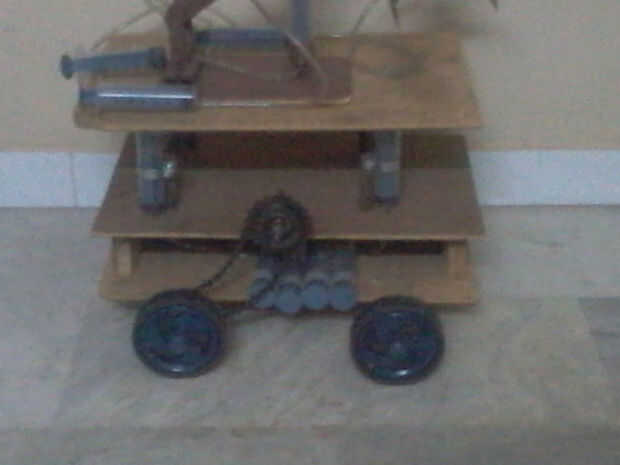 Un auto carga mechanisim de la catapulta que tiene bolas de papel de aluminio o los rodamientos de bolas para disparar.