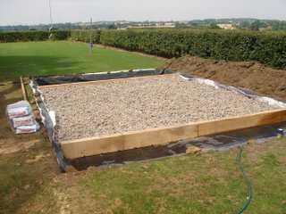 Una vez totalmente hemos llenado la sección central de la Ciénega hidropónica jardín luego Inicio llenado con agua y agregar el resto de los durmientes alrededor del exterior del sistema. Este tamaño de tanque lleva alrededor de 6 metros cúbicos de agua para llenar a un nivel justo por encima de la Alfagrog. Llenar con agua permite la Alfagrog de nivel y asegurarse de que nos agregue la grava que se encuentra inmerso en el agua.