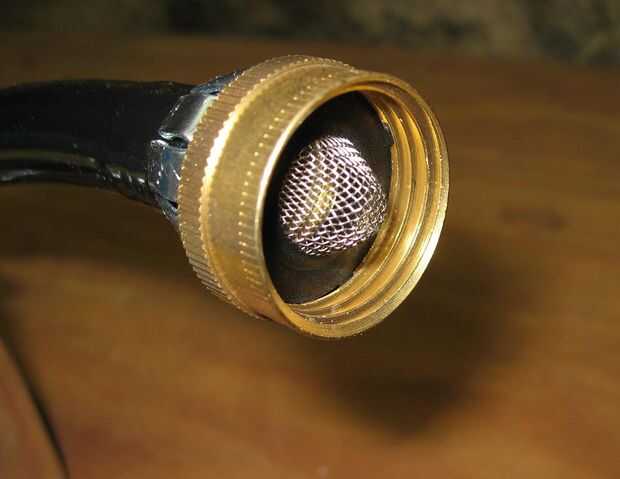 Inserte la lengüeta de la manguera de 1/2" manguera flexible 1/2" y colocar como se indica. Si el extremo del hilo hembra 3/4" manguera vino con una arandela de goma, retírelo y coloque la arandela de caucho con filtro como se muestra en la segunda foto. El filtro ayuda a atrapar las partículas que podrían conectar las líneas de goteo. Debe verificar y limpiar el filtro cuando sea necesario. Ahora Atornille el desconector macho en la rosca para manguera hembra como se muestra en la tercera foto.