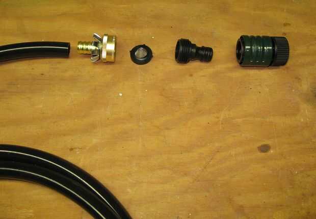 Finalmente, tornillo la hembra rápida desconexión en la rosca de manguera de PVC de 3/4" como se muestra en la última foto.