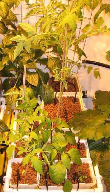 La 8 foto tomada el 21/03/09 muestra una planta de tomate en 8 semanas exclusivamente en un cubo de Bato. La planta de tomate fue de 2' alto y bien en la etapa de floración pero no tenía ningún fruto en este momento. La foto 9 muestra la misma planta de tomate en 12 semanas. La planta de tomate es ahora más de 4' de alto y tiene docenas de tomates más pequeños (hasta 1.5") y todavía está floreciendo.