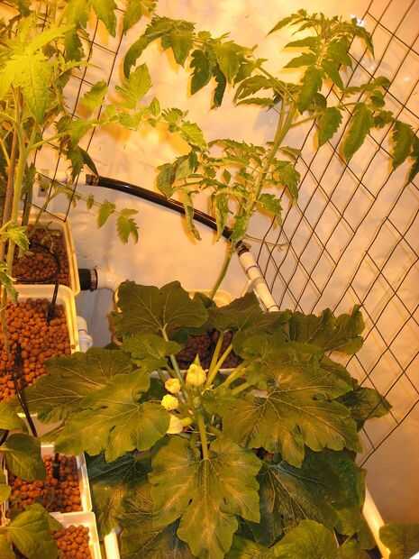 05/04/09 tercera foto: comparando la foto 28/03/09 se puede ver que las plantas han recorrido un largo camino. Cerca de 2 semanas ha transcurrido entre las dos fotos. Las plantas de calabaza ya tienen poco de calabaza y brotes múltiples. Transplantaron la calabaza en los cubos Bato más grandes, que han reemplazado a 4 de las macetas pequeñas. Esto muestra cómo grandes ollas se puede utilizar con este sistema. Las plantas de guisante y tomate nuevo han más que cuadruplicado en tamaño. Las únicas plantas que no han progresado mucho eran mis plantas de Chile Jalapeño. Creo que un poco les sembré temprano y los nutrientes eran un poco fuertes que quemaron un poco.