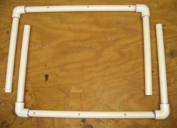Utilizar el mismo procedimiento anterior con las dos piezas restantes reunidas en la primera foto con el tubo restante de PVC largo con perforaciones. Una vez finalizada las dos piezas montadas deberían verse como la cuarta foto.