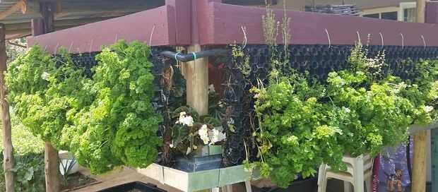 Espero que esto inspire a otros a pensar fuera de la caja y disfrutar los friuts, (en este caso verduras y hierbas), de su trabajo.