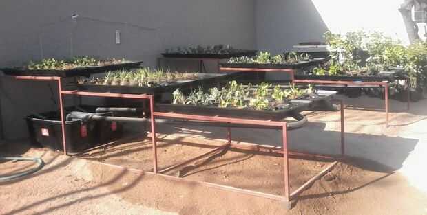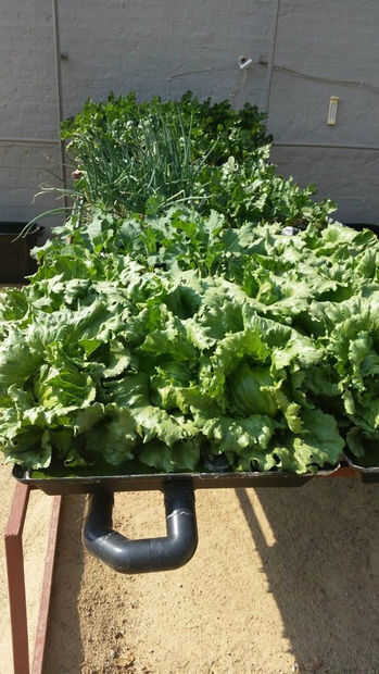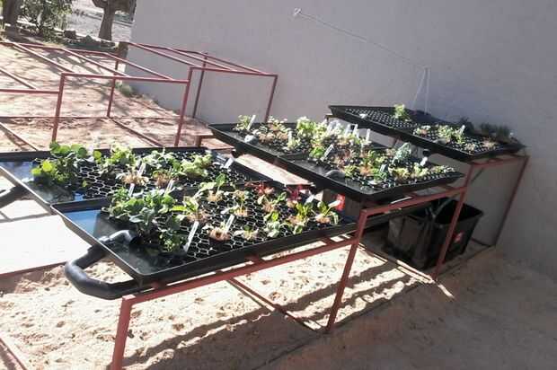 25 plantas de lechuga, 40 espinacas, 25 plantas de apio y cebollitas unos 170 fueron cultivadas en bandejas de 6.