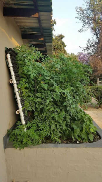 Como la instalación contra la pared hice un jardín casi vertical de 1,5 metros por 2,5 metros de ancho.