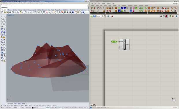 De mi paisaje, he creado un objeto con Rhino/Grashopper. Los vértices definen la forma, y entonces utiliza el nodo Delunay en Grasshopper para generar la malla.