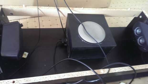 La pantalla externa funcionada bien desde el portátil, así que opté por usar el d-sub en el portátil que fue a un USB powered divisor del VGA. Audio vino de un conjunto de Logitech 2.1 sobre que tenía a mintiendo, estos montados debajo de la mesa de centro y proporcionan un montón de volumen y buen bajo para escuchar música y por supuesto jugar algunos Street Fighter!