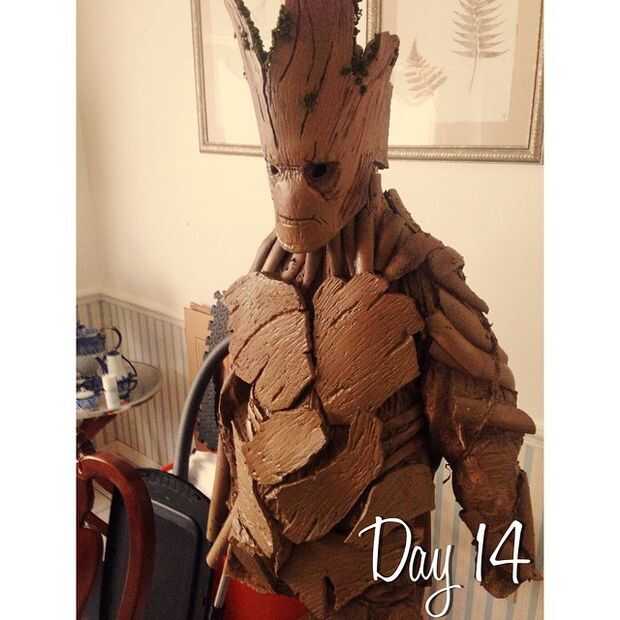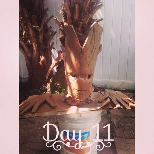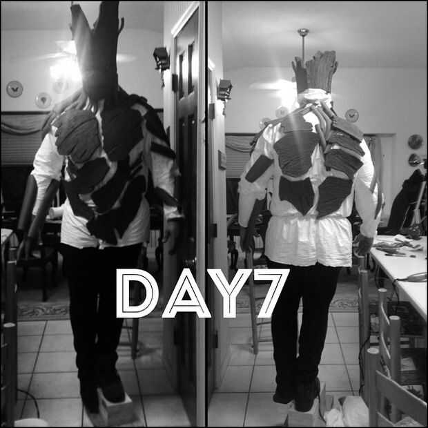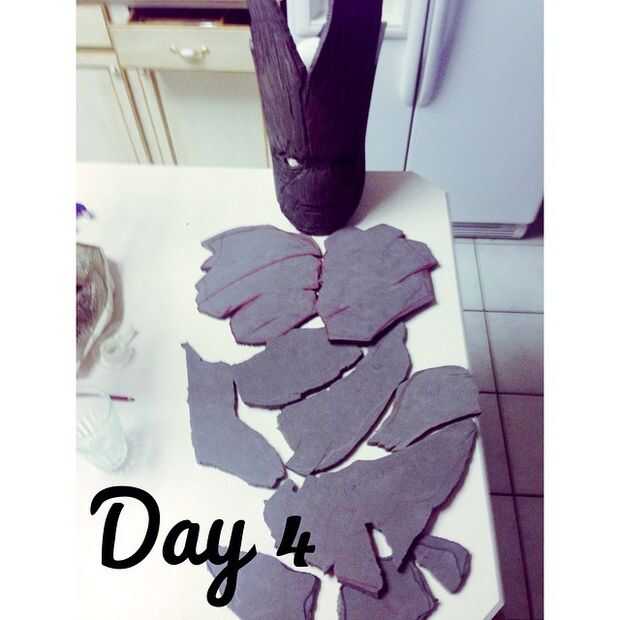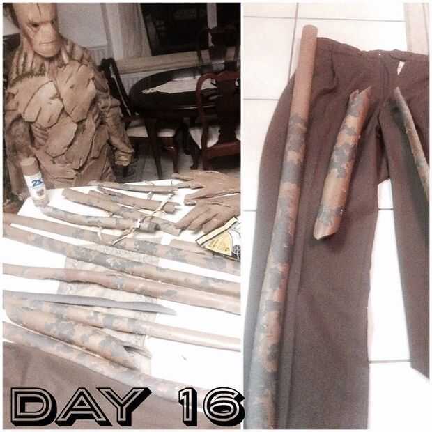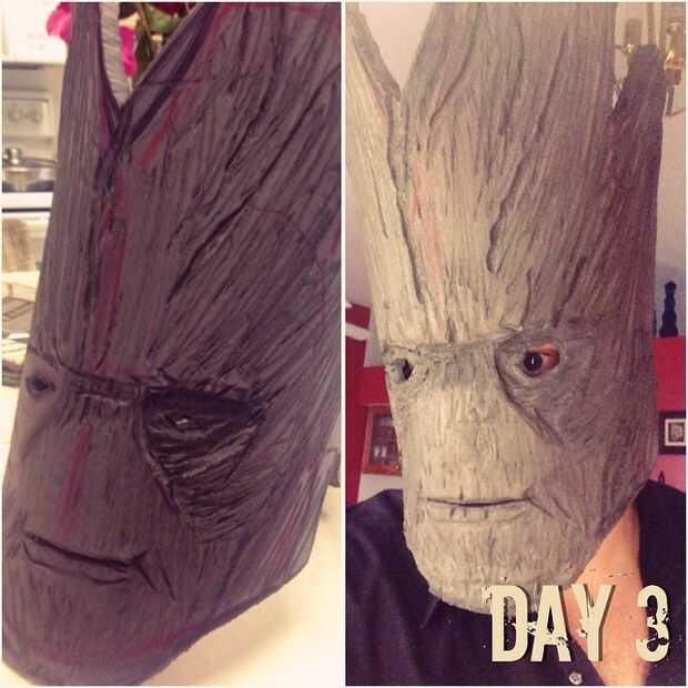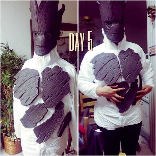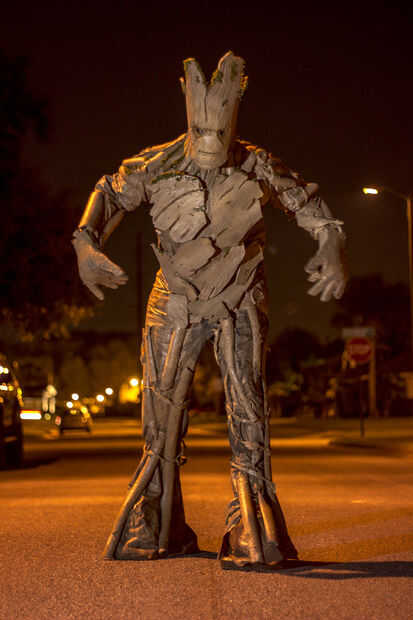 Buscaba una manera desafiarme a mí mismo por crear algo fuera de este mundo. La idea del traje de Groot fue un reto para mí. Mis compañeros dijo que no sería capaz de volver a crear un personaje tan intenso antes de Halloween. Había un montón de ensayo y error con este traje puesto que no hay ningún tutorial sobre cómo hacer un alien enorme árbol. Estoy muy contento con los resultados. Este traje me tomó 20 días para hacerlo. Creo que voy a tener manchas de pintura para un muy de largo plazo.