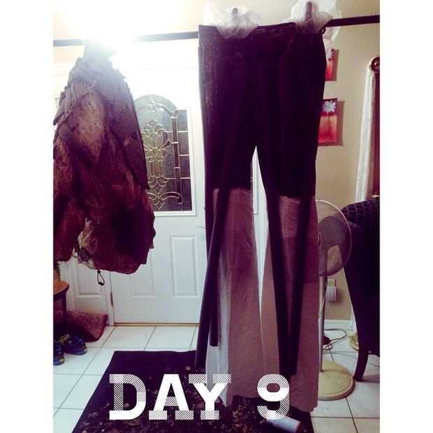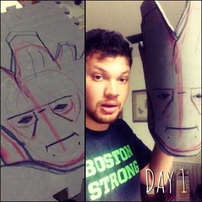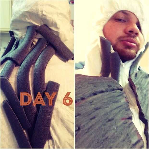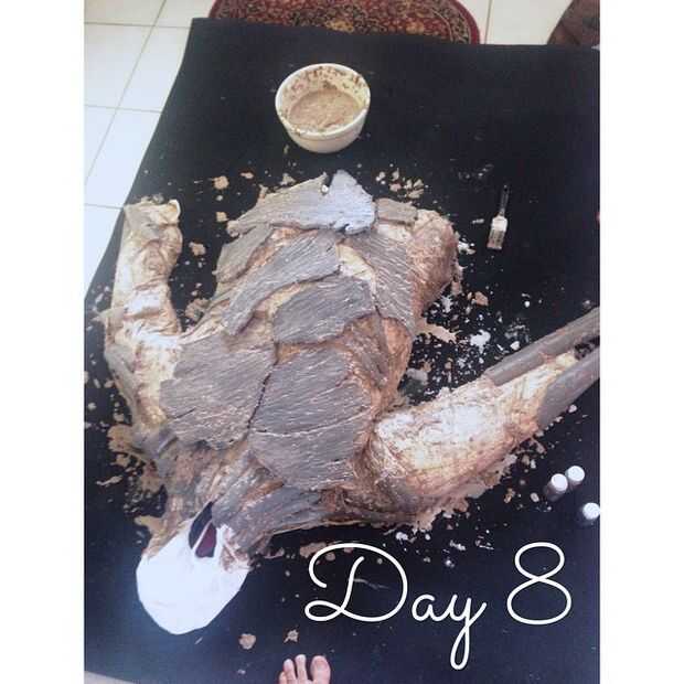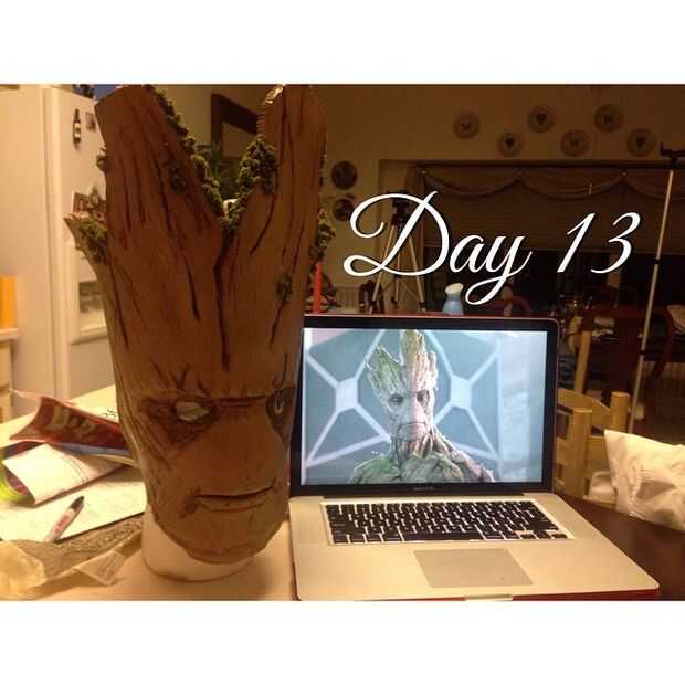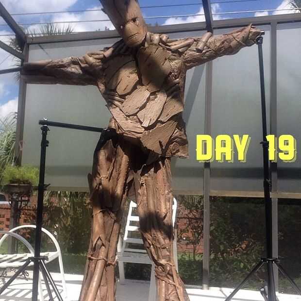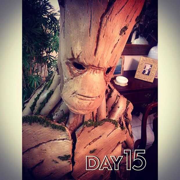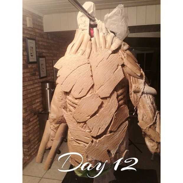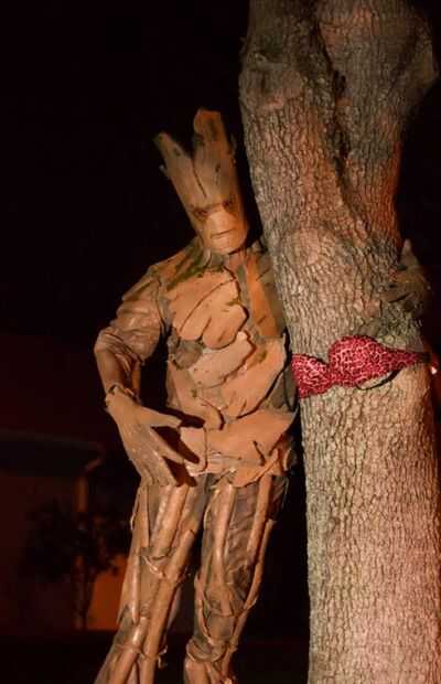 Buscaba una manera desafiarme a mí mismo por crear algo fuera de este mundo. La idea del traje de Groot fue un reto para mí. Mis compañeros dijo que no sería capaz de volver a crear un personaje tan intenso antes de Halloween. Había un montón de ensayo y error con este traje puesto que no hay ningún tutorial sobre cómo hacer un alien enorme árbol. Estoy muy contento con los resultados. Este traje me tomó 20 días para hacerlo. Creo que voy a tener manchas de pintura para un muy de largo plazo.