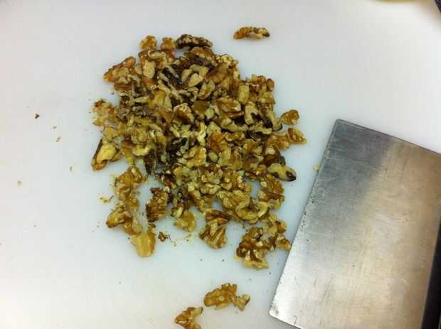 Las nueces aportan satisfacción, nuez medio a la composición, así como proporcionar una densa textura intermedia que ayuda a silenciar el contraste entre el crujiente apio y pollo suave. Tueste las nueces es crucial para transformar el sabor de la nuez de un toque tímido cuando se muerde un pedazo real de nuez en un vapor aromático, nuez, terroso y tostado que infunde sutilmente toda la mezcla.