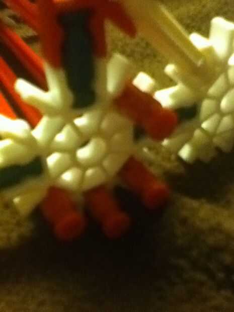 Agregar sus cañas blanco todavía! Roja espera viene primero. Cuando acoplamiento barras rojizas sujete al final cerca de la punta. Si no esto podría resultar en una estación de acoplamiento muy poco atractiva. Coloque tres al blanco conector (en lugares que se muestra en la foto de arriba) Coloque una varilla a la parte inferior del conector amarillo y uno en la red una parte superior. Si usted consigue confuso basta con ver la foto.