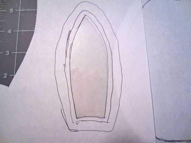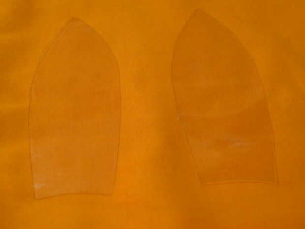 2. establecer uno de los oídos en un pedazo de papel blanco a lo. Entonces le di un margen extra de relleno. Y luego añadir aproximadamente 1/2 de margen de costura a lo largo de la parte exterior del patrón trazado.
