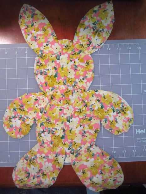5. cortar el patrón trazado en la tela hacia fuera. El Sr. Bunny está empezando a verse bien.