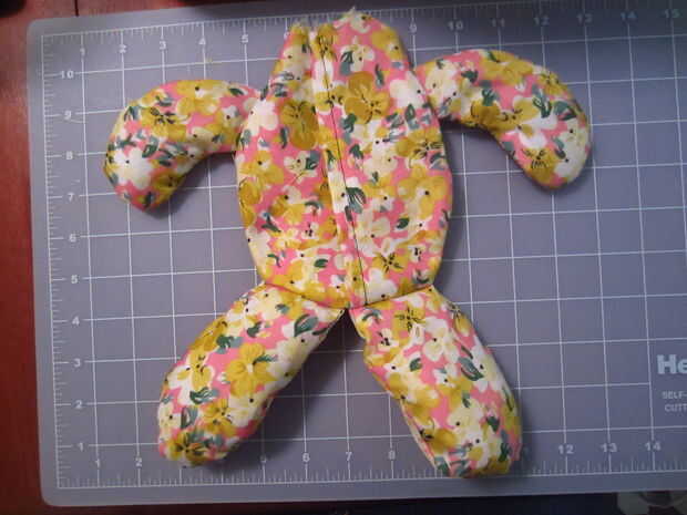 3. Continúe costura, a los bancos y añadir relleno a la otra pierna, brazos y orejas. Para los oídos, recuerde insertar las piezas de plástico primero para asegurarse de que los oídos resistirá muy bien.