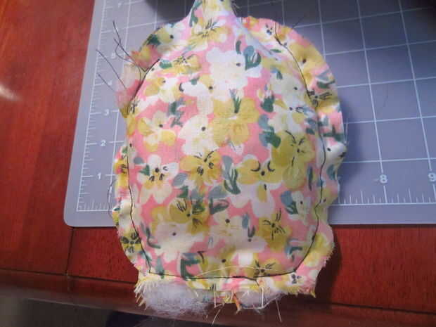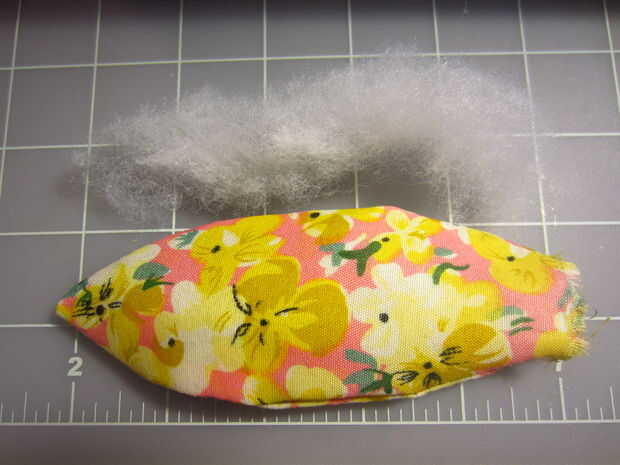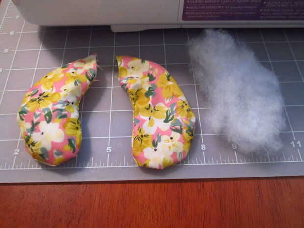 2. después de coser la pieza de patrón, darle la vuelta adentro hacia fuera y agregar relleno. Fui luz en el relleno porque es más fácil de coser cuando conseguirán las piezas. (Mi primer peluche en mi máquina de coser. Soy un novato, tienes que ir fácil en mí).