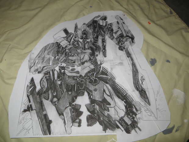 Puede ser suelto con sus decisiones, sólo asegúrese de mantener formas grandes, general y detalles que dan al espectador una indicación de lo que es lo que en la calabaza final (es decir, estaba seguro de tener suficiente información para poder saber lo que es brazo de Optimus contra su pierna en el fondo).