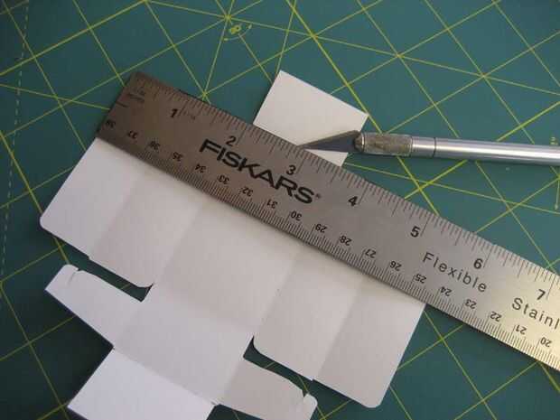 Primer Desdoble cuidadosamente la caja de cartón sin dañarlo. Analizar el cuadro desplegado. Utilizando software como Photoshop, "encoger" la longitud total a un tamaño que se adapta a las baterías. En este punto, personalizar el logo de la manzana, etc..