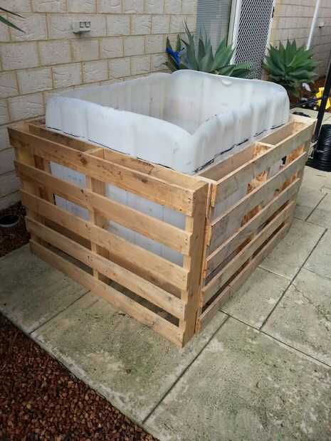 Utilizar el taladro del tornillo las paletas juntas. Parte posterior de un pallet se superpone perfectamente en el extremo del otro.
